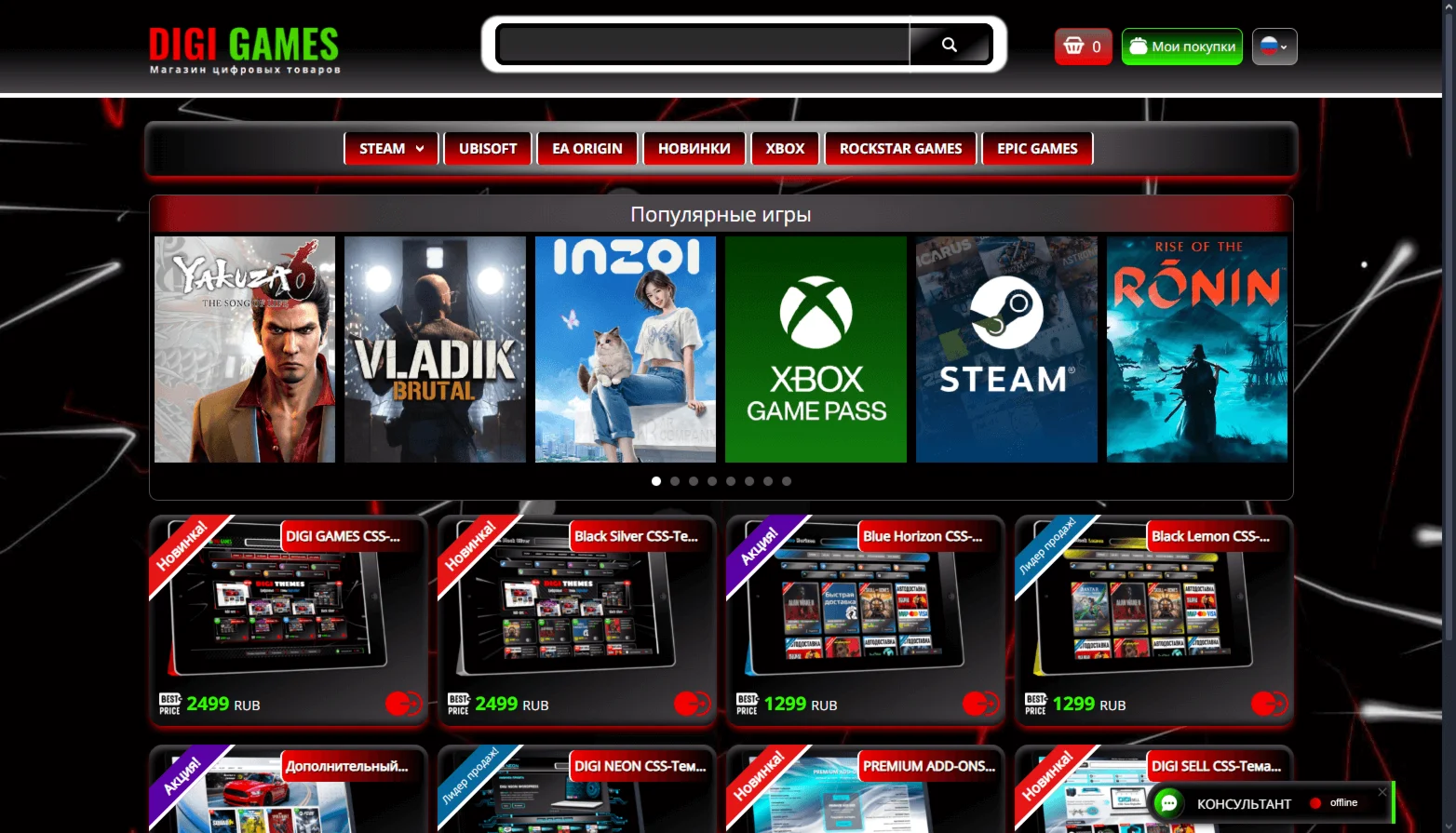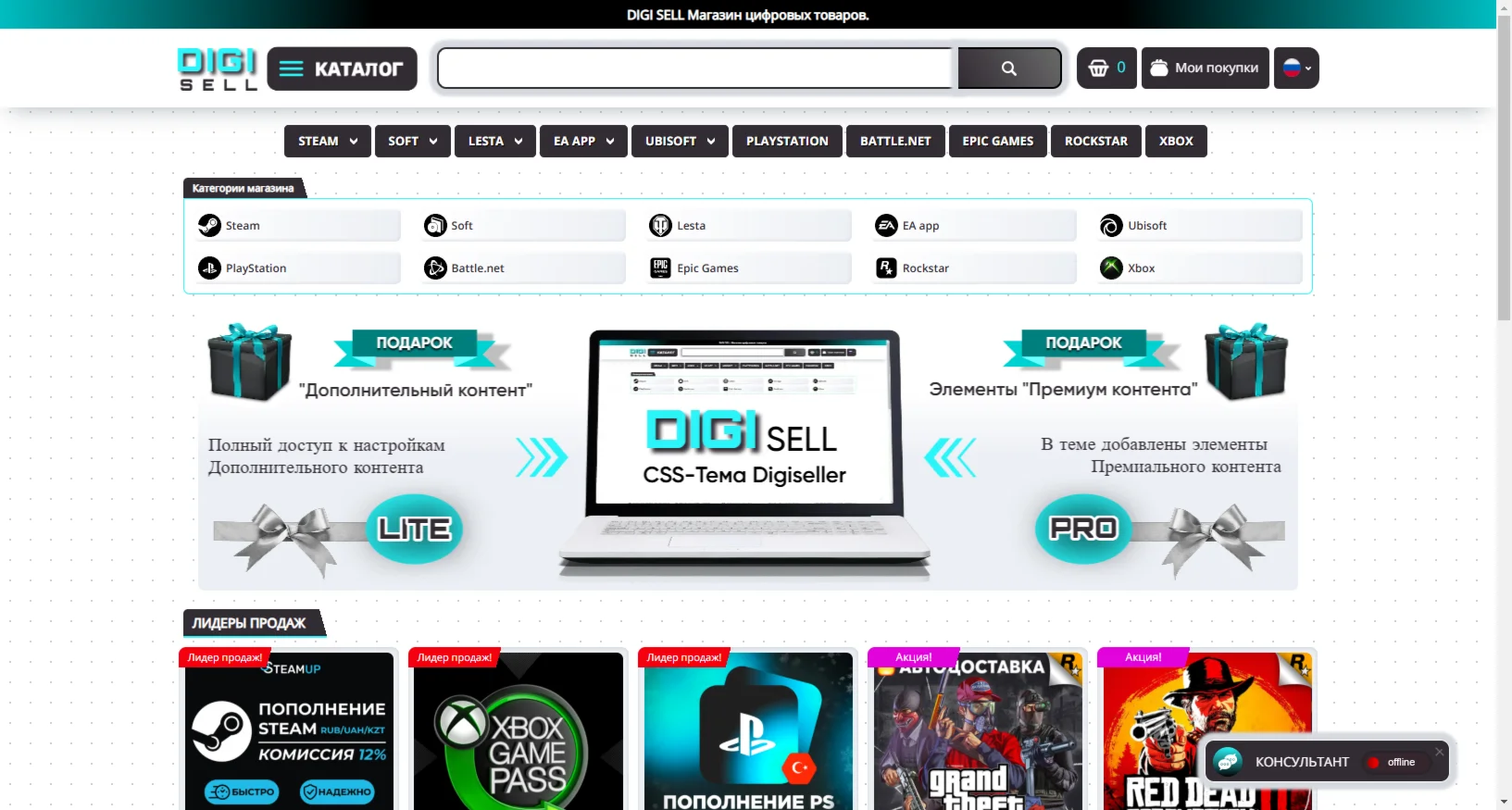 — Все блоки отлично подходят как для базовой темы Digiseller, так и для созданных CSS-Тем магазина «DIGI THEMES»